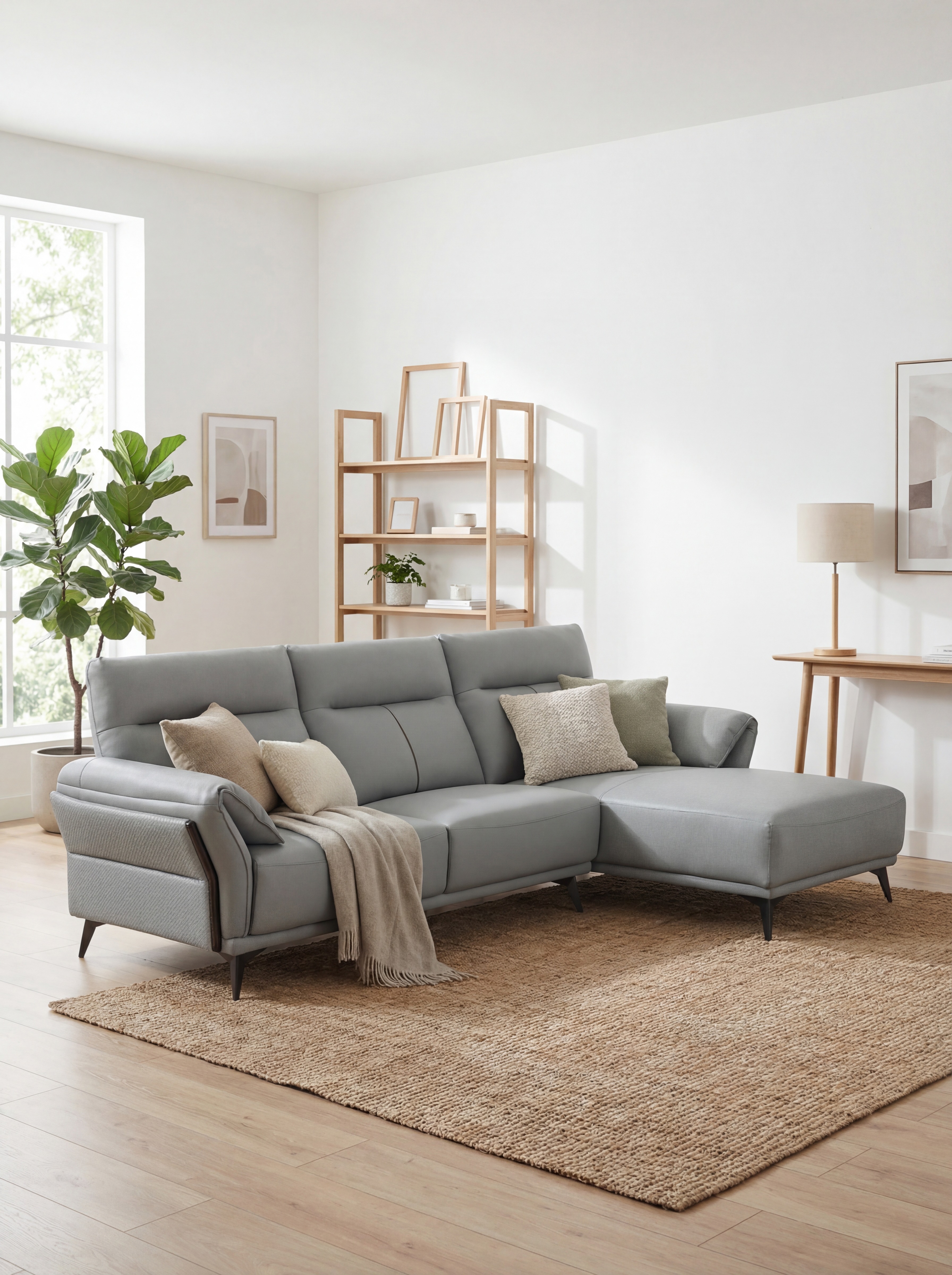 模組化設計與貴妃位,配上舒適分段靠背、斜扶手與厚實坐墊,加上金屬高腳既時尚又方便掃地機器人進出
