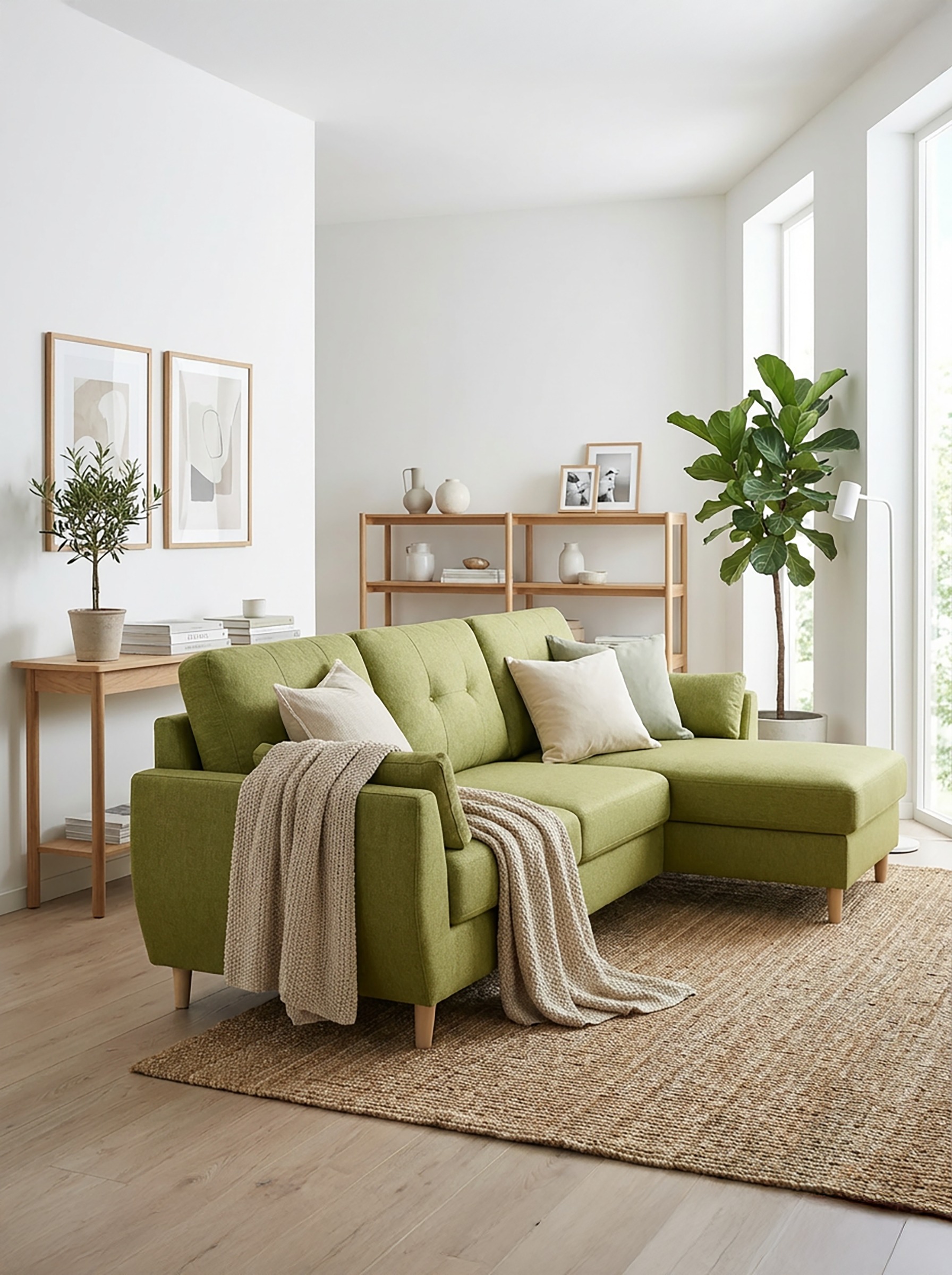 高背設計與方正扶手枕的紮實包覆,透過飽滿坐墊與可自由調整位置的移動式腳踏,彈性打造寬敞的L型貴妃座,並以實木高椅腳展現溫潤穩重的居家美學